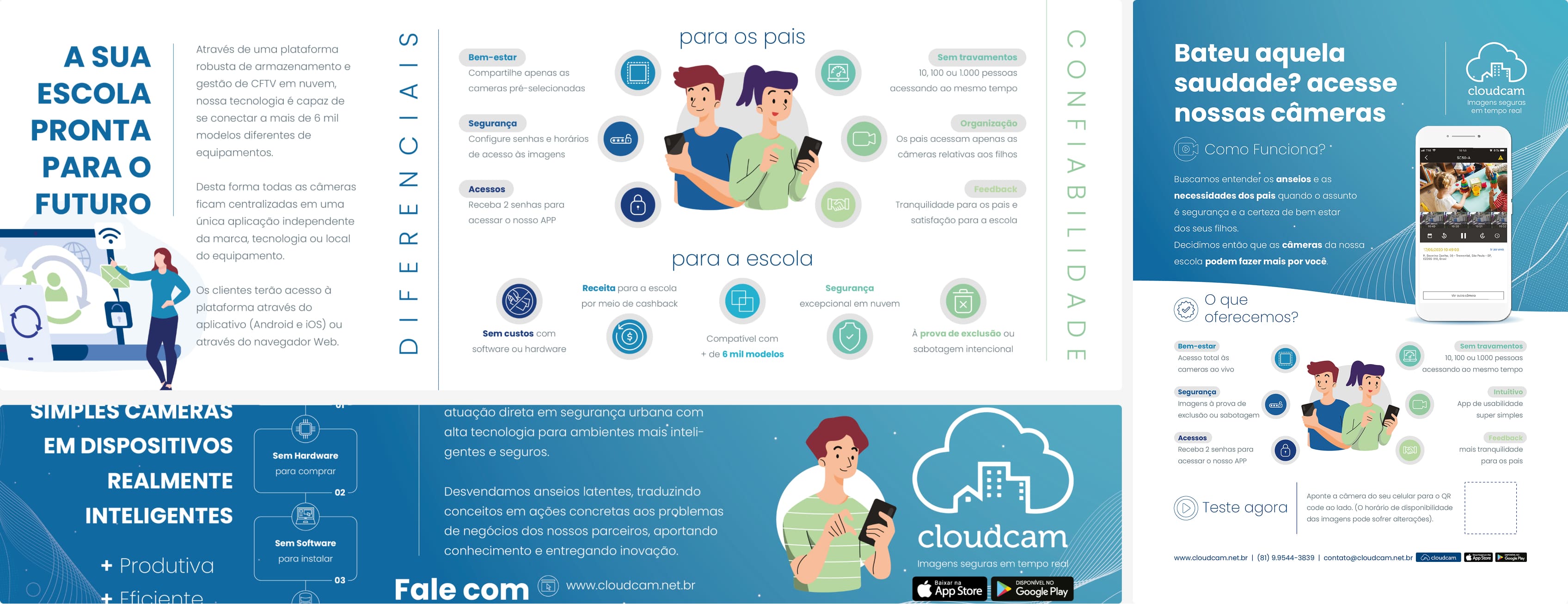 A CLOUDCAM buscava fechar novos contratos. Por se tratar de um serviço não tão comum, optamos por desenvolver um material estratégico e direcionado, que detalhasse os principais serviços. Para atingir esse objetivo, desenvolvemos Panfleto e Folder explicativos e bem ilustrados.
